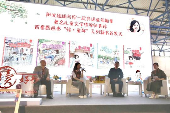 3月31日上午,由北京出版集团京版若晴科创文化发展(北京)有限公司主办的阳光姐姐与你一起共话童年趣事,著名儿童文学作家伍美珍首套图画书“绘•童年”系列新书首发式在中国国际展览中心二号馆“大家读好书”活...