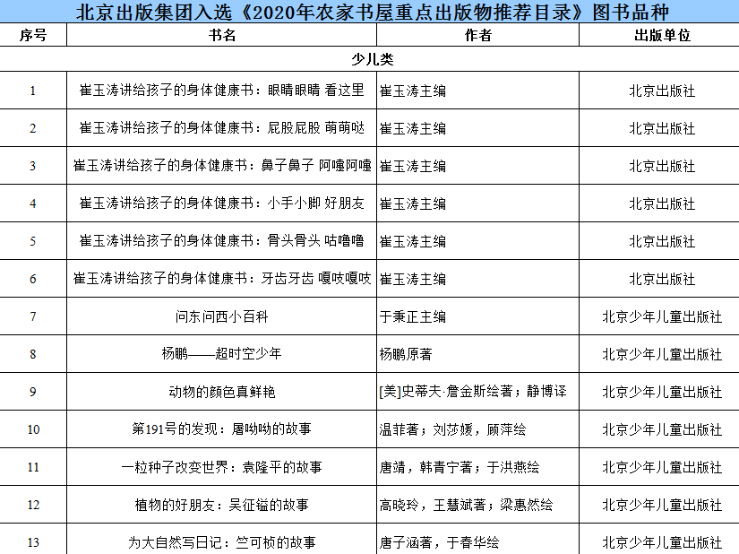 北京出版集团32种图书入选 《2020年农家书屋重点出版物推荐目录》