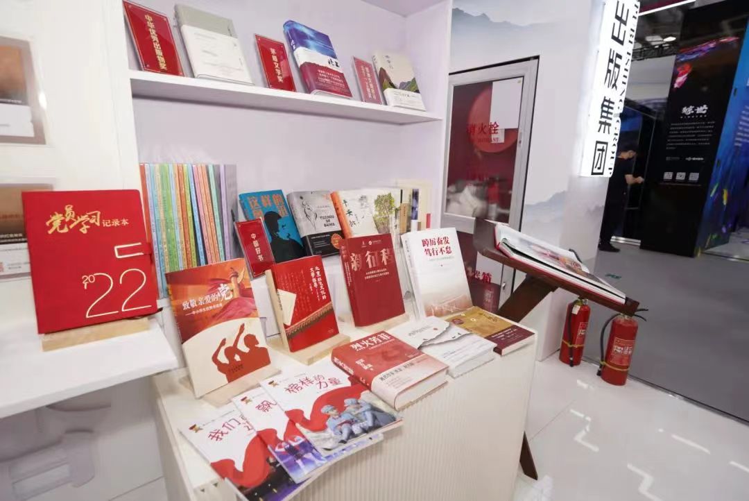 集团展位上重点展示了精品出版成果,如“北大红楼与中国共产党创建历史丛书”、“中共中央北京香山革命历史丛书”、《北京红色文化的文学探寻》、《踔厉奋发 笃行不怠——党的十九大以来北京发展纪实》、《新征程:从全面建成小康社会迈向全面建设社会主义现代化国家》等聚焦党史学习教育、喜迎“二十大”等重大主题的主题类图书;《北上》《云中记》《远去的白马》《平安批》《正在消失的美丽——中国濒危动植物寻踪》等近年来获得国家级奖项的精品出版物;“中国古代冰雪文化丛书”以及《顾拜旦传》《走进北京冬奥会》《一个人的奥林匹克》等“双奥”主题精品图书;《潮北京:北京网红打卡地攻略系列丛书2》、“北京地方志·风物图志丛书”、“北京中轴线文化游典”等北京文化类图书;以及《西海固笔记》、“北京自然观察手册”丛书、《芥子园画传 康熙初刻版》等各类原创新书。