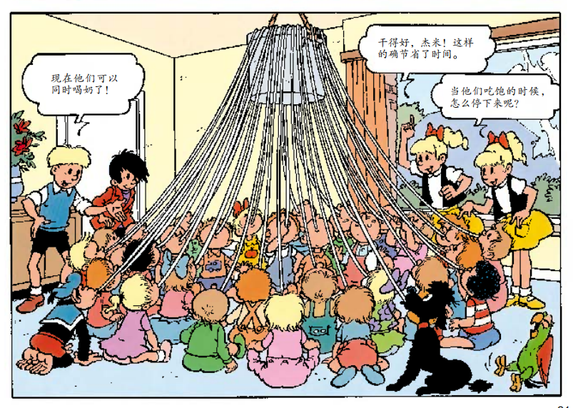 好不容易解决了喂奶的问题,接下来他们面对的是给孩子们换尿布、分发水果和洗澡的问题,每一步都困难重重。但什么事情能难得住我们聪明的杰米呢?